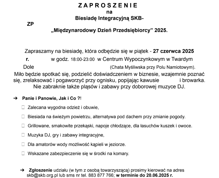 📎 Uwagi: Prosimy o potwierdzenie udziału. Zaproszenie i pismo organizacyjne znajdują się w załącznikach wiadomości z dnia 13.06.2025.